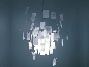 (吊られてる紙1枚1枚に日本語やら独語やら英語やらで色々意味深なことが書いてある。)